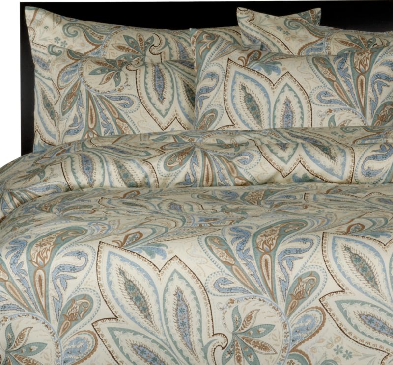The first plan of attack for the room is that we'll eventually buy a king bed. The only question is when. And whenever this happens, a king bed is going to mean new bedding; eventually new furniture; and maybe the current beige walls will get a fresh coat of paint. Until then, I'm not too keen on a premature curtain search. In response to this, my wonderful husband encouraged me to "look" for bedding.